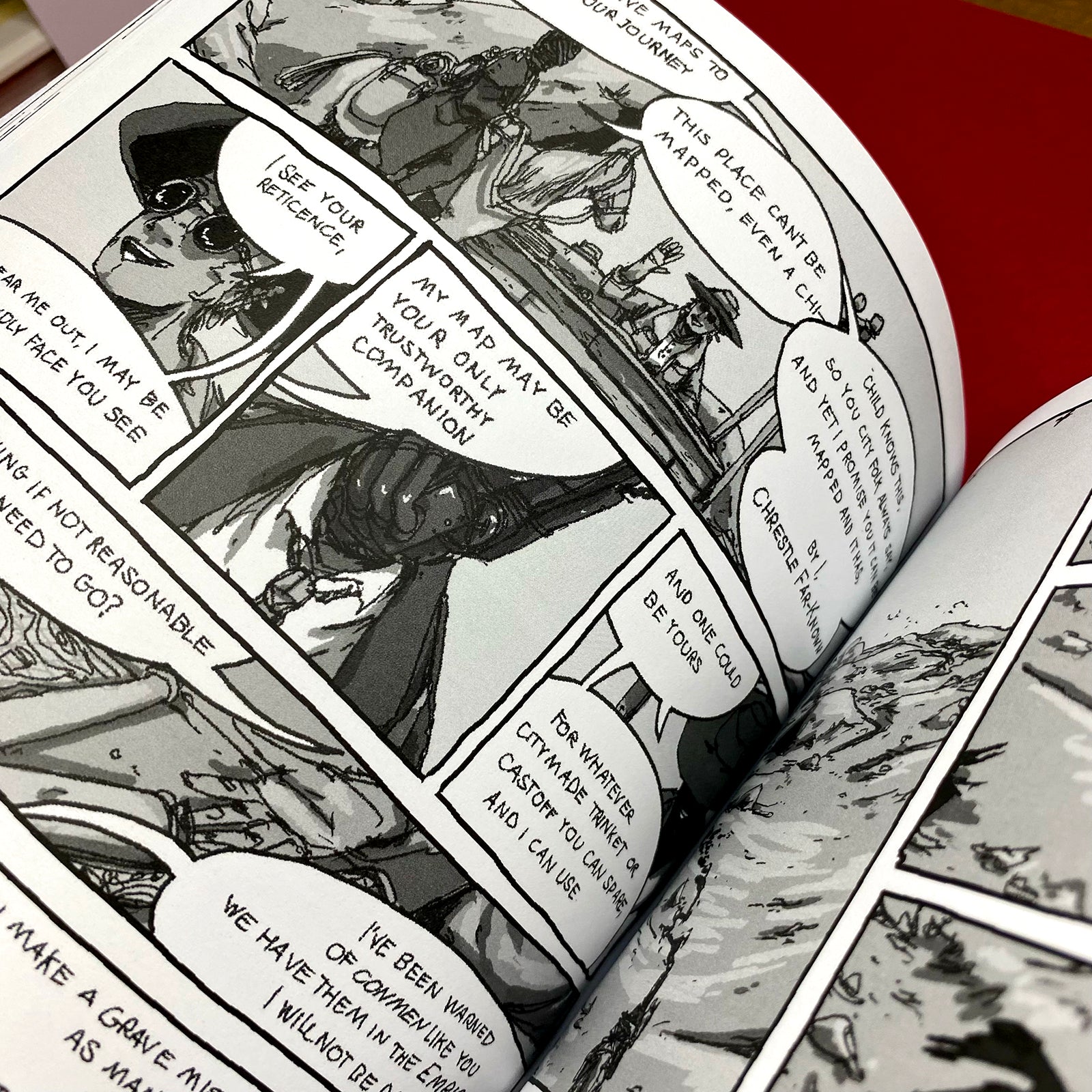A black and white comic anthology from a plethora of artists telling stories from a variety of desolate locales.