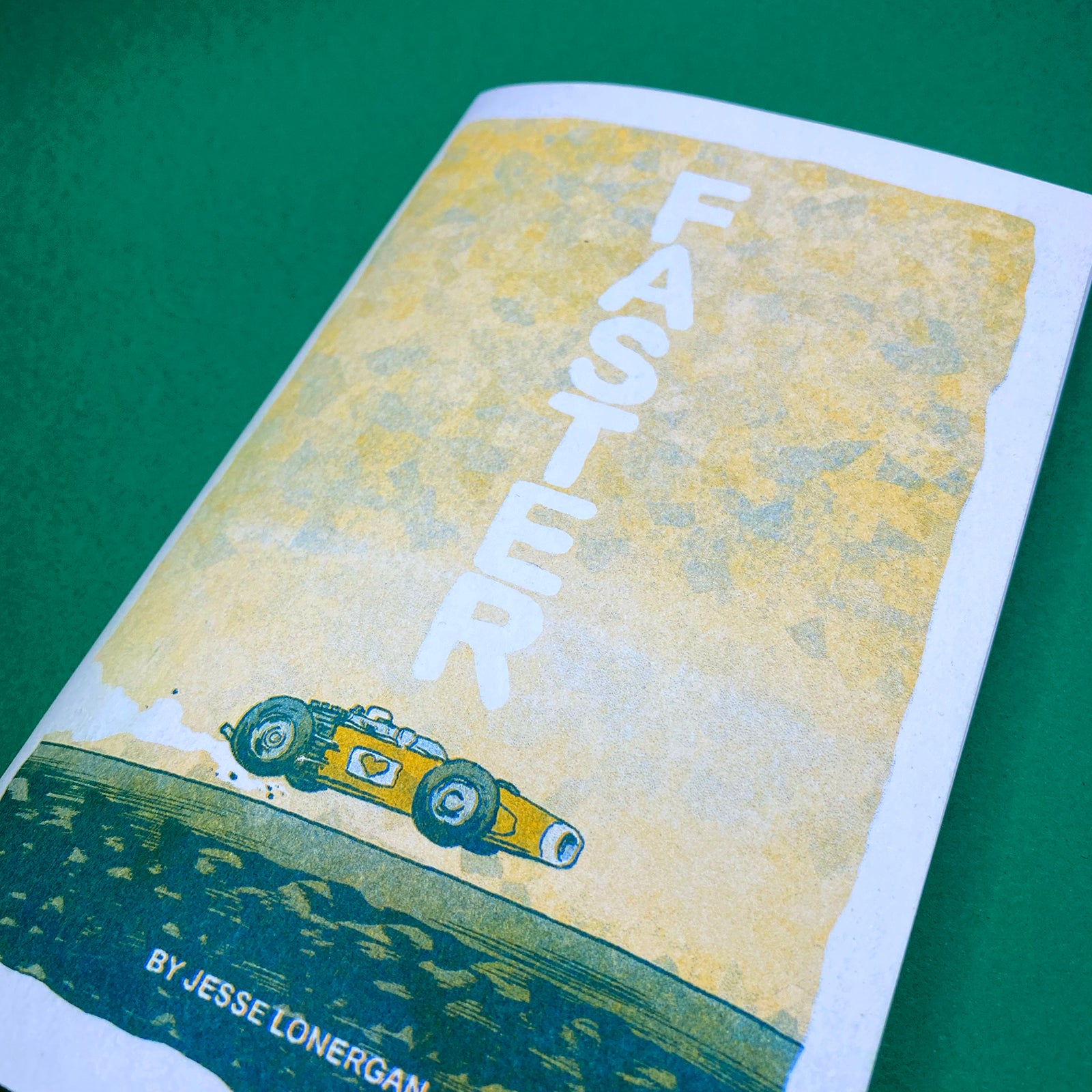 Who truly knows what a premiere racer is thinking while behind the wheel, we can only imagine the lives that play out on the speedway. Join the motley cast of racers in Jesse Lonergan's Faster, a visually engrossing display of racing, and the people who can't help but race. Can perpetual runner up Molly Vox finally pull ahead of Kona Demille, the five-time world champion? Find out in Faster! For young adults and older.