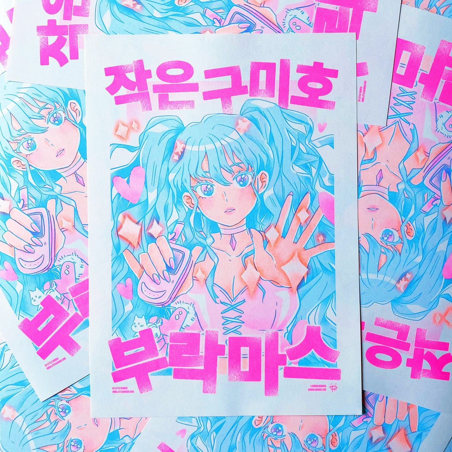 Illustration by Little Kumiho. A collaboration between Little Kumiho and Black Mass (now Koguchi Press). Inspired by Magical Girl anime and manga featuring “Little Kumiho” and “Black Mass” written in Hangul letters.