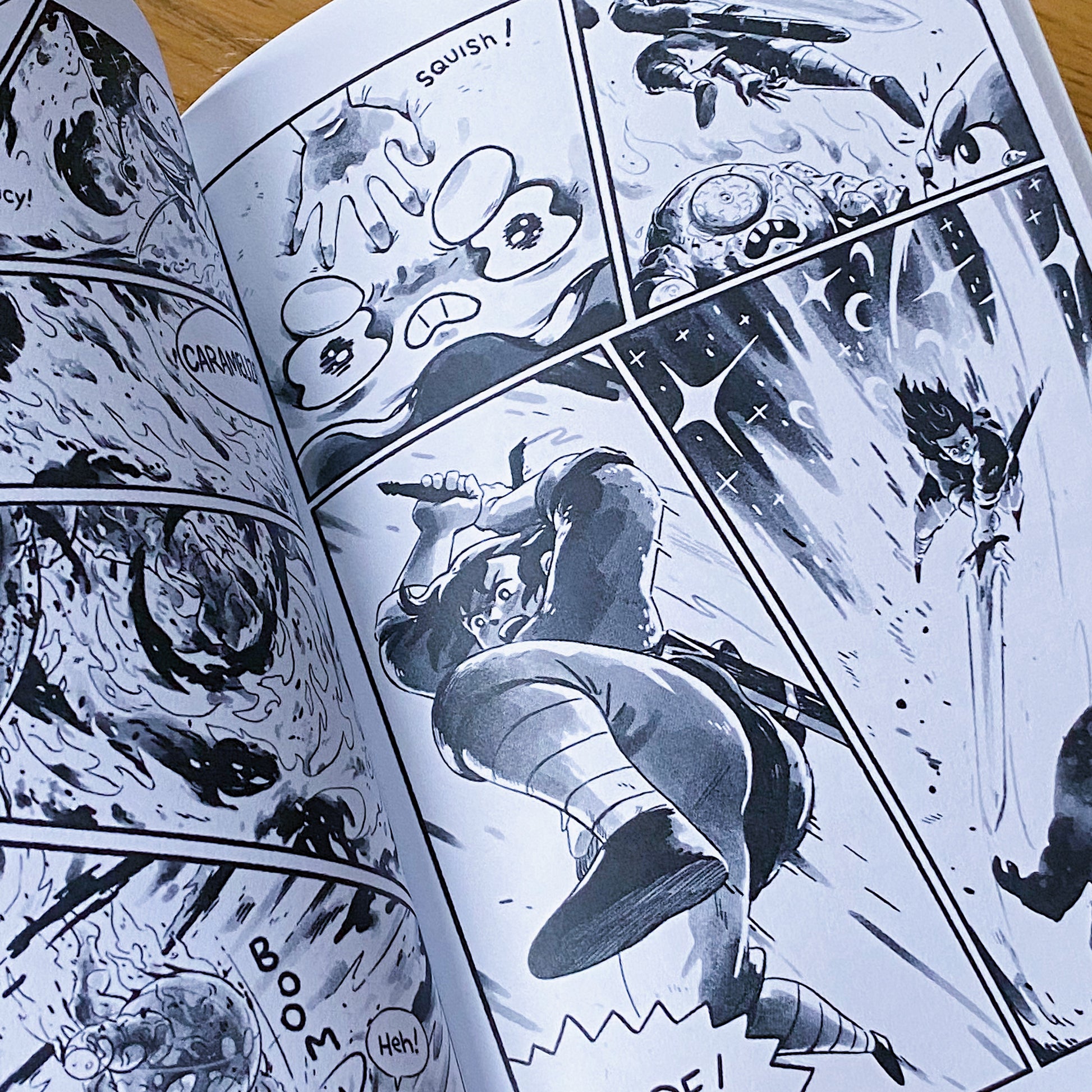 This book collects Kyle’s anthology-style comics RPG Friends #1 and #2, plus never-before-seen comics comprising RPG Friends #3, and the comic Hamburger Prince. This book is 136 pages of fantasy, JRPG-inspired goofs and gasps.