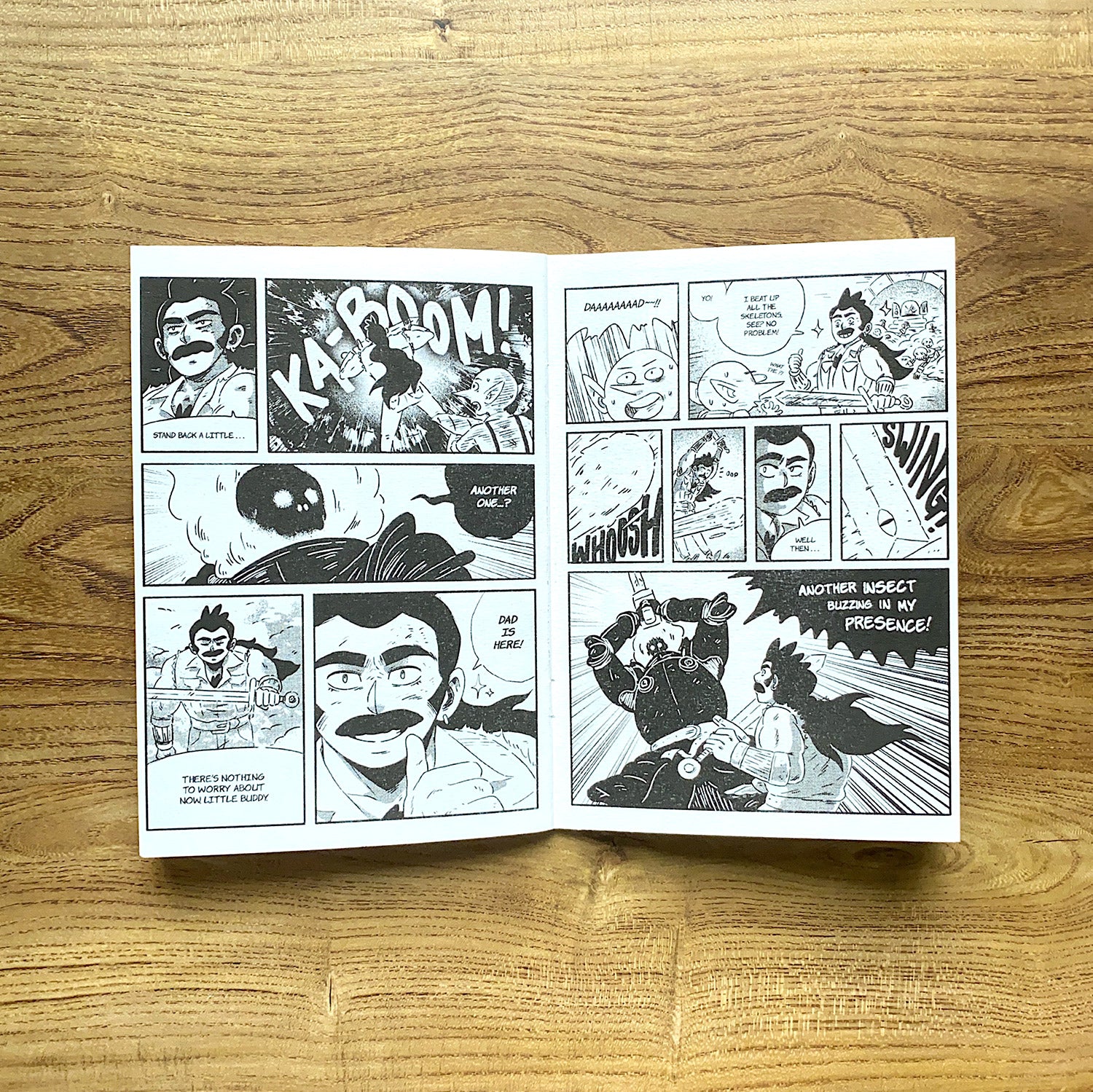 Now, a (not very) brave goblin named ROSCOE attempts to navigate a dangerous dungeon with the help of the double-denim wearing, mullet-rocking, moustachioed DAD THE HERO to reclaim one of the ancient demon weapons before it’s too late...